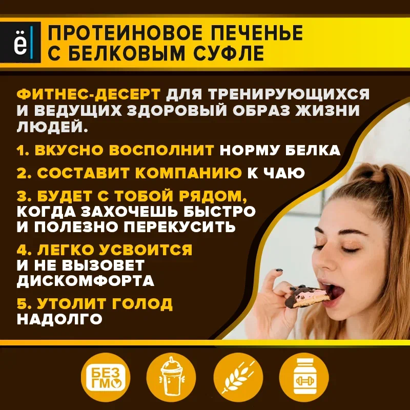 Протеиновое печенье "ё/батон" с белковым суфле 20% белка, со вкусом шоколада, 50гр., 4шт