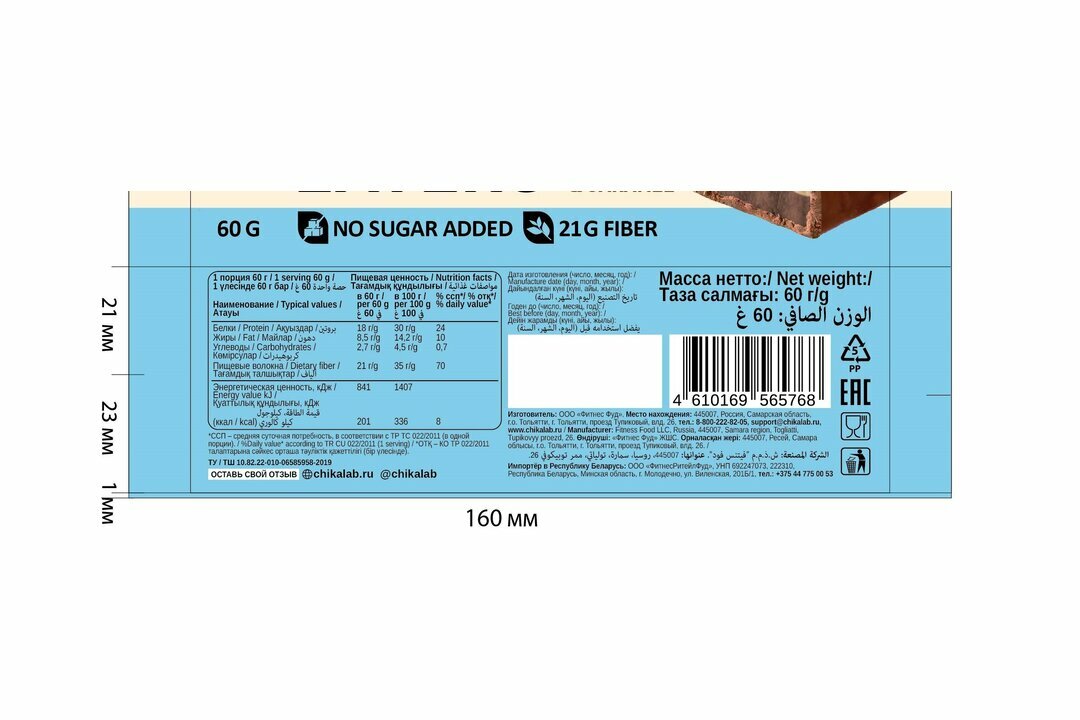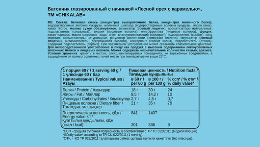 CHIKALAB Набор батончик глазированный , вкус лесной орех и карамель 20 штук по 60 г