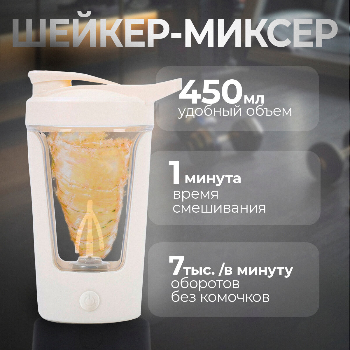 Купить Шейкер электрический (белый) для спортивного питания, шейкер для протеина (объем 450мл) с миксером