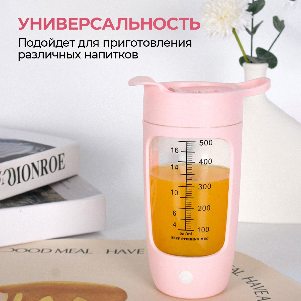 Шейкер XL электрический (розовый) для спортивного питания, шейкер для протеина с миксером (600 мл)