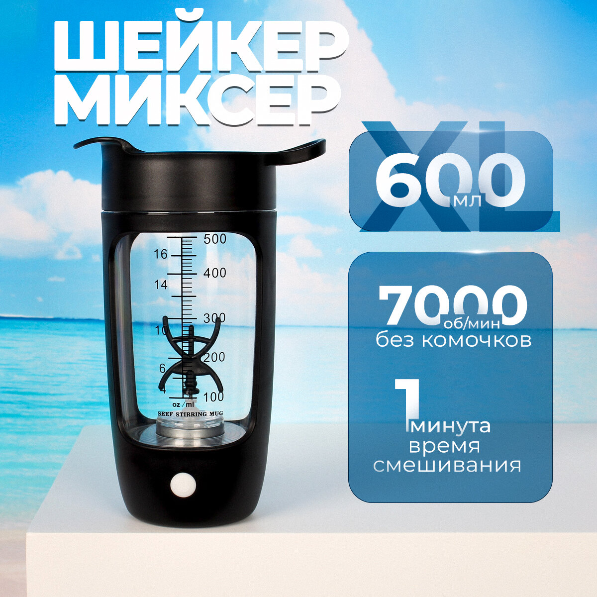 Электрический шейкер для спортивного питания и протеина, XL-размер, 600 мл, черный цвет