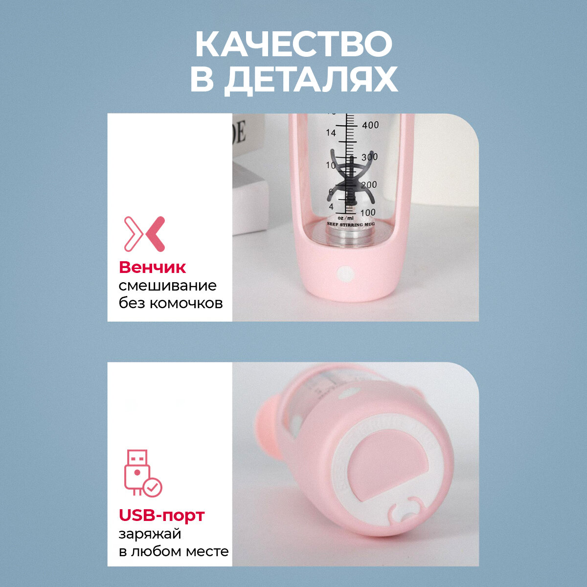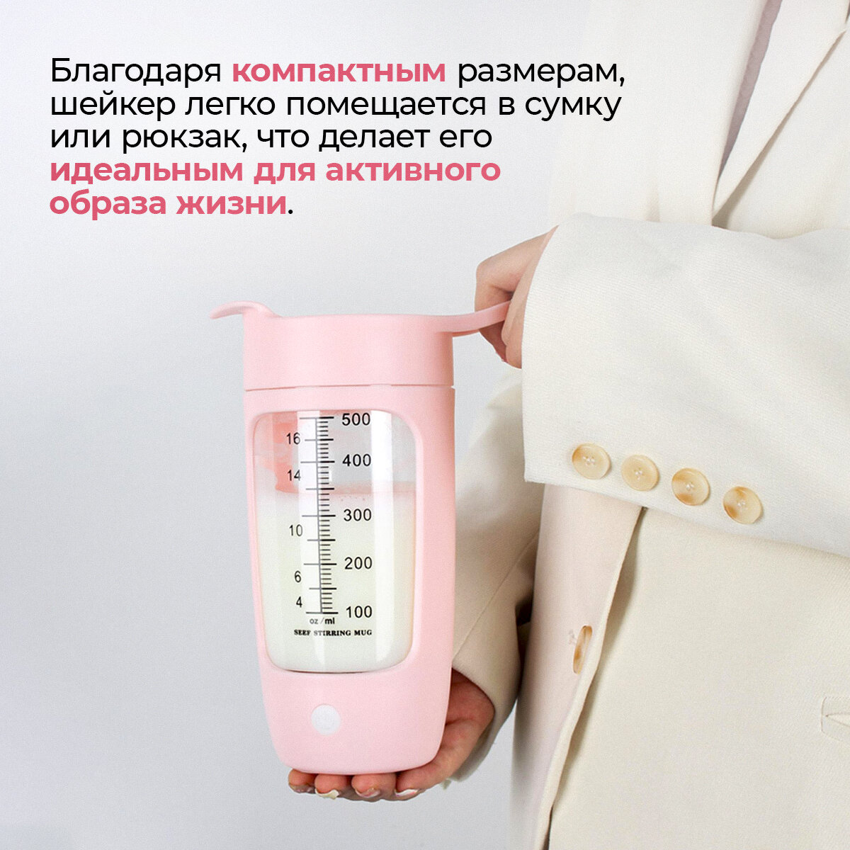 СохранитьШейкер XL электрический (розовый) для спортивного питания, шейкер для протеина с миксером (600 мл) интересное: