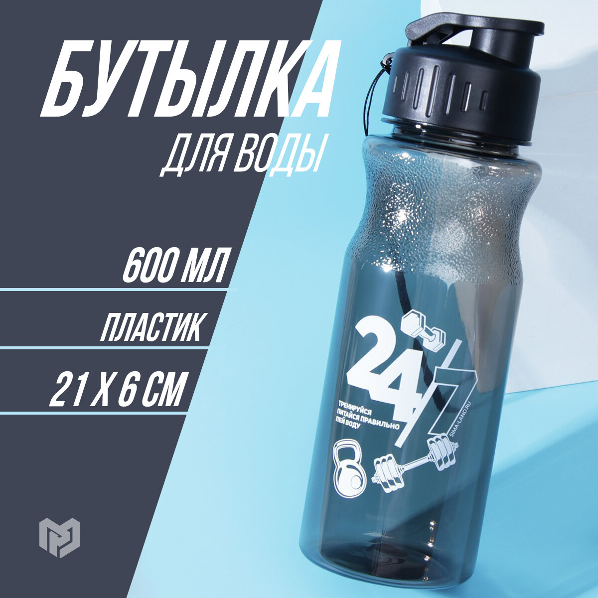 Бутылка для воды спортивная "24/7", 600 мл