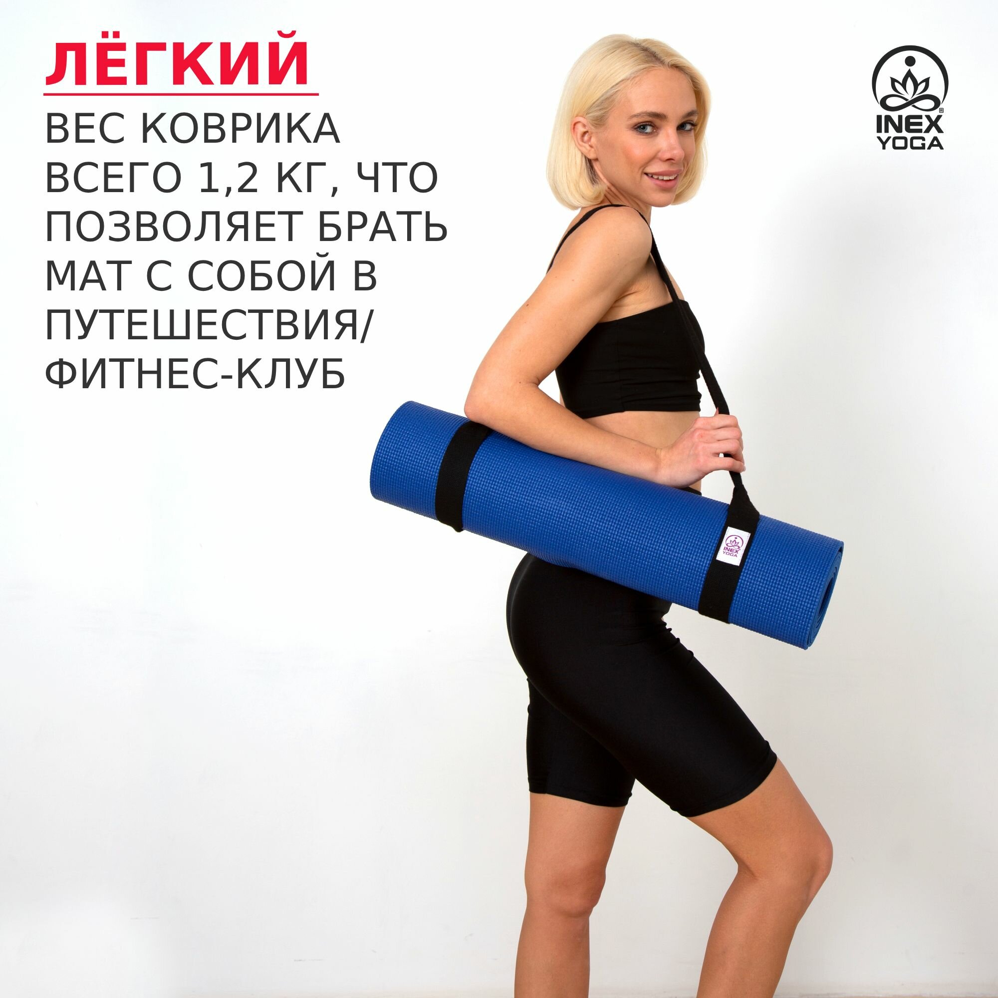 Коврик для йоги INEX, 170х60х0,35 см, цвет синий интересное: