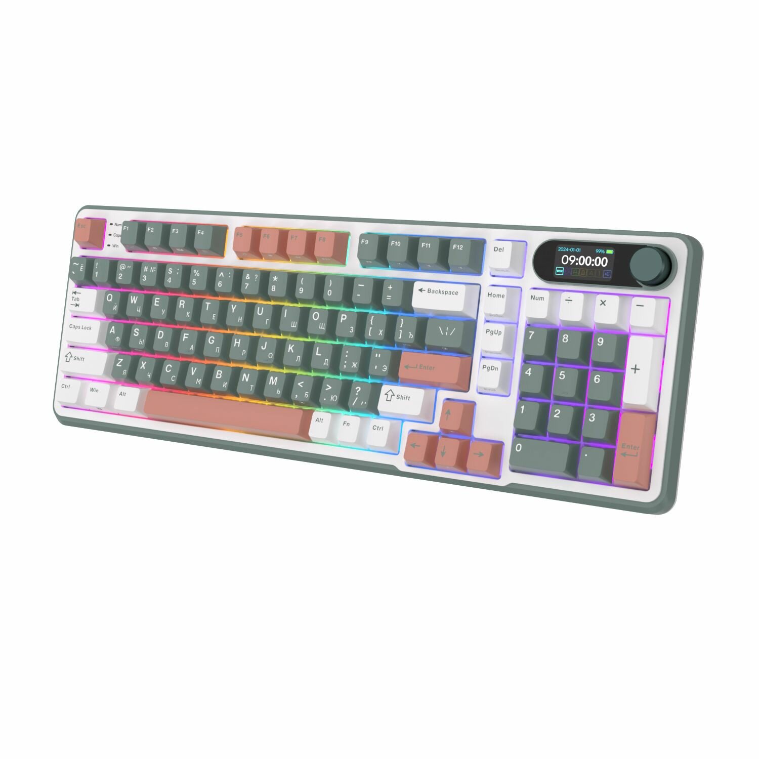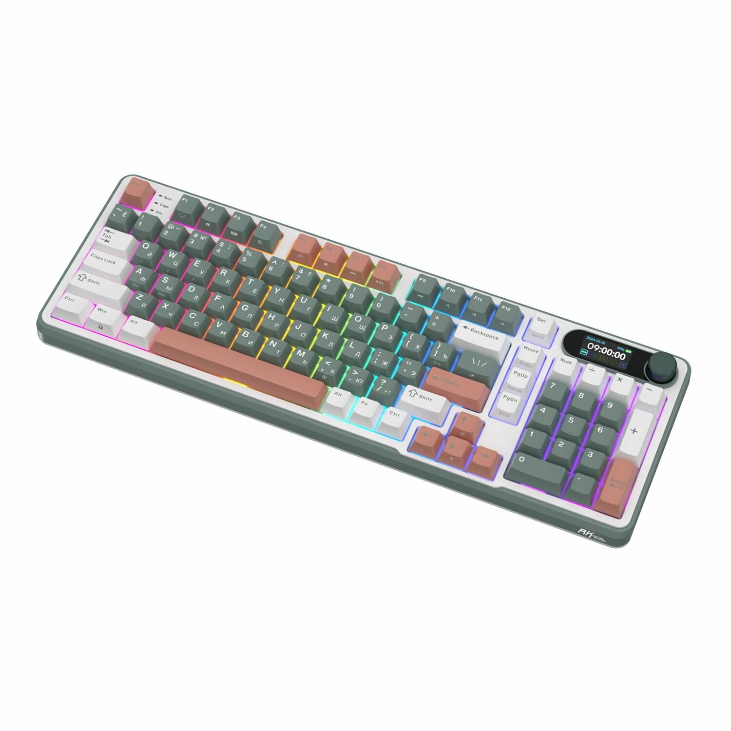 Полноразмерная (96%) механическая клавиатура Royal Kludge RK-S98 - 3 типа подключения, 98 клавиш, Top Mount, профиль PBT Cherry, цвет Camping, переклю
