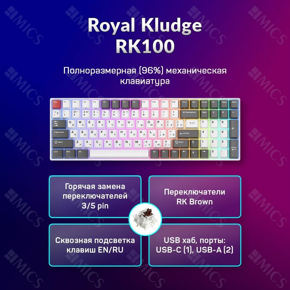 Клавиатура Royal Kludge RK100 Brown switch/Grey/Red/White