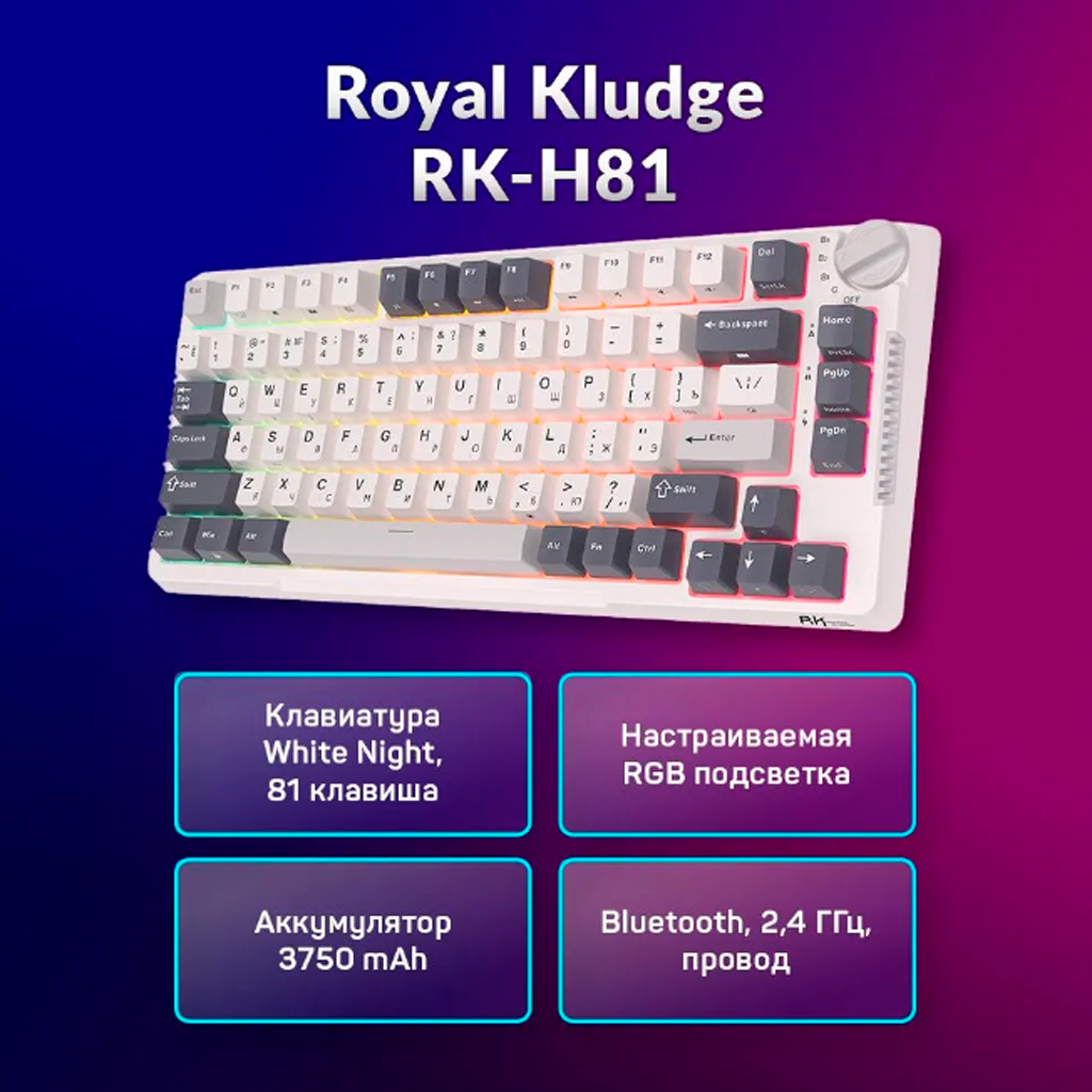 Компактная (75%) механическая клавиатура Royal Kludge RK-H81 - 3 типа подключения, 81 клавиша, Gasket Mount, White Night переключатели RK Sky Cyan