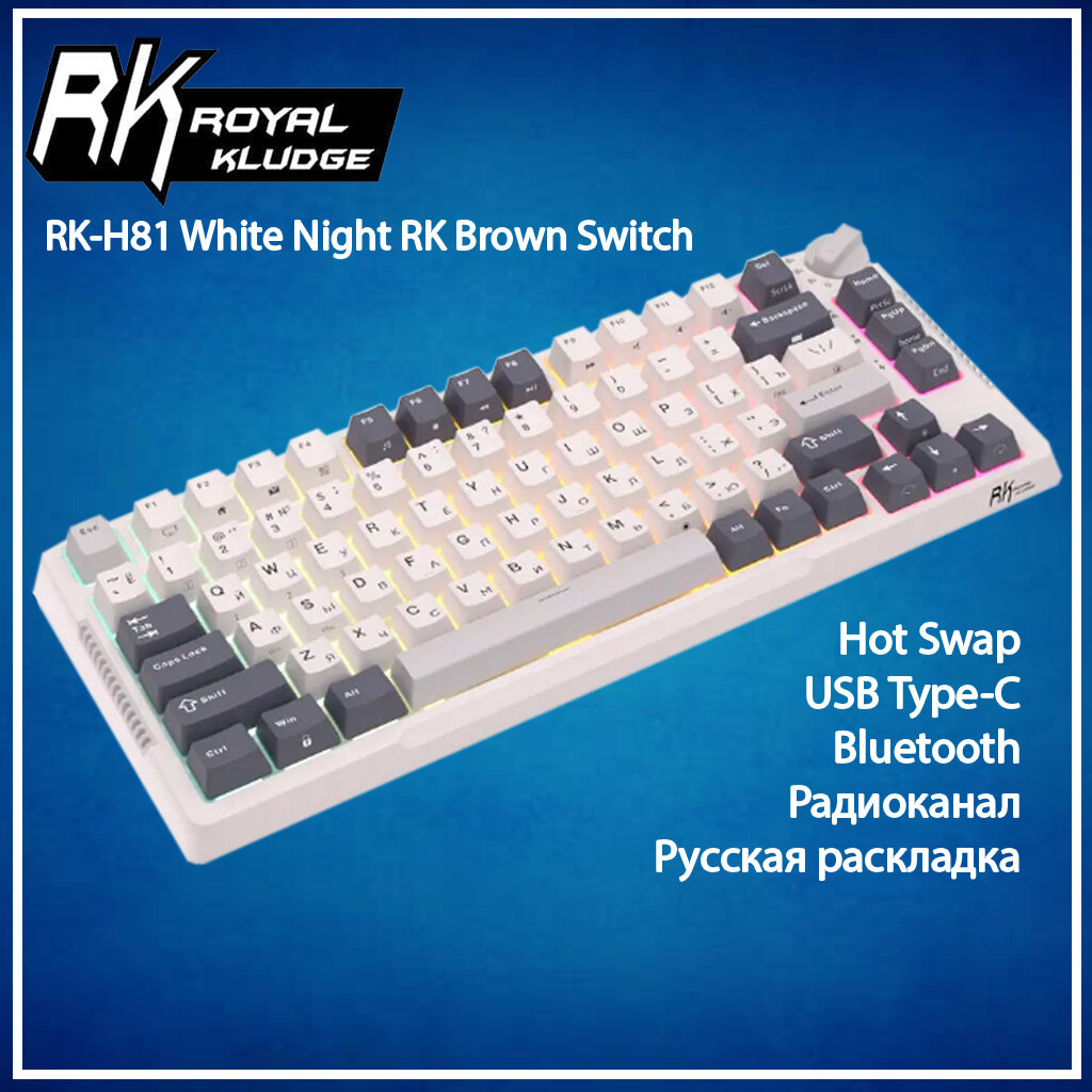 Беспроводная механическая клавиатура Royal Kludge RK-H81 цвет White Night, RGB, hot swap, кейкапы без подсветки символов, тактильные свитчи (RK Brown)