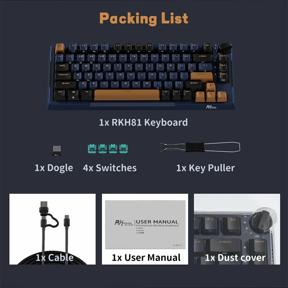 СохранитьКлавиатура механическая Royal Kludge RK-H81 Star Night (switch RK Sky Cyan) (6935280823350) интересное: