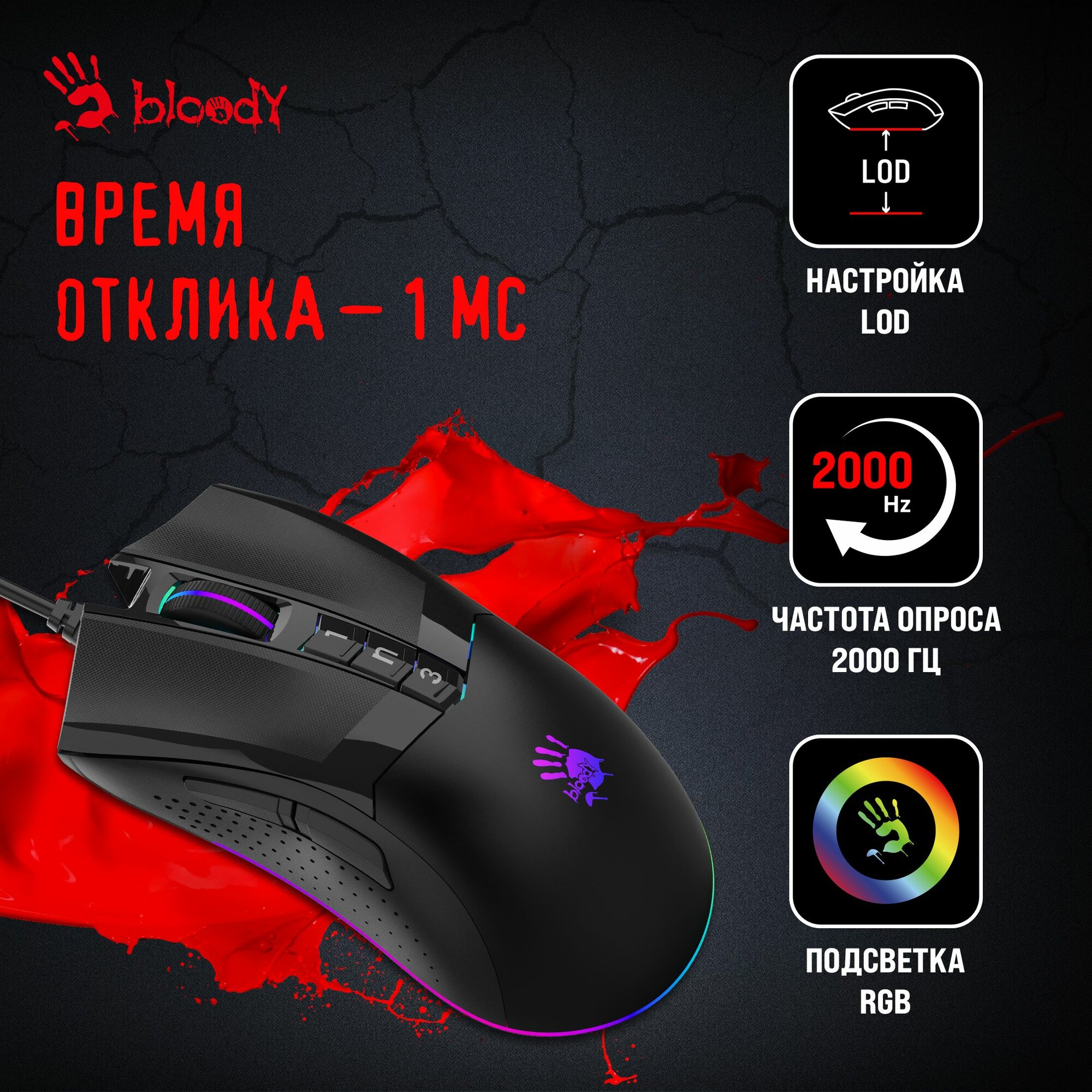 СохранитьМышь A4Tech Bloody W90 Max черный, оптическая, разрешение сенсора 10000dpi, проводная, длина провода 1.8м, кнопок: 7, подходит для правой руки (W90 MAX ( STONE BLACK)) интересное: