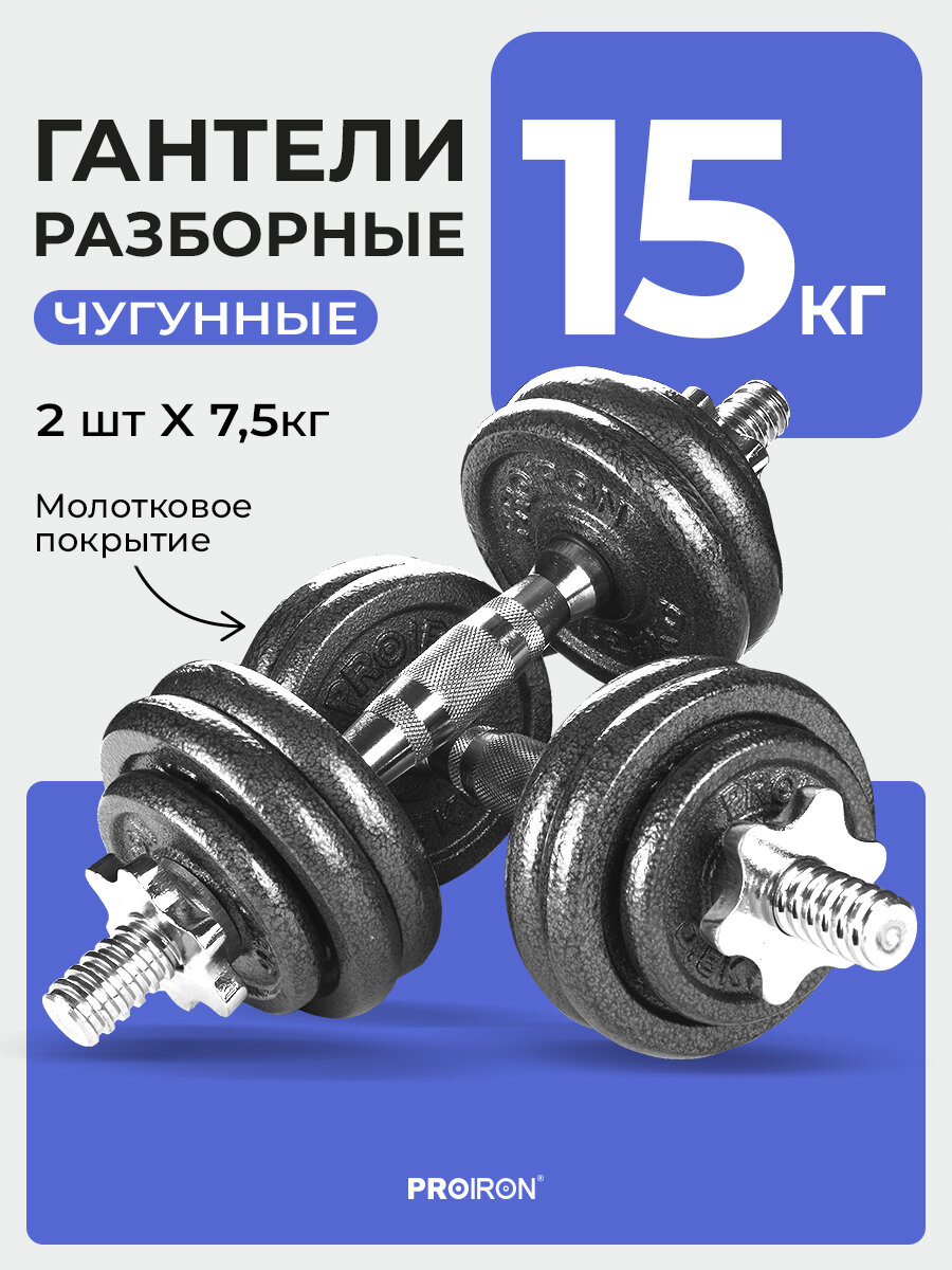 Гантели разборные PROIRON, чугунные 2 шт по 7,5 кг интересное:
