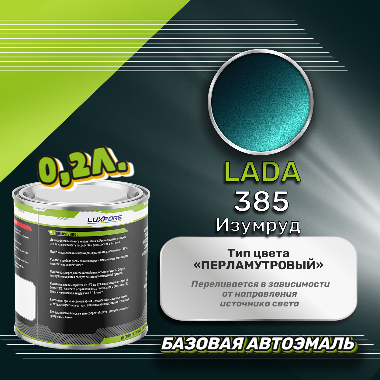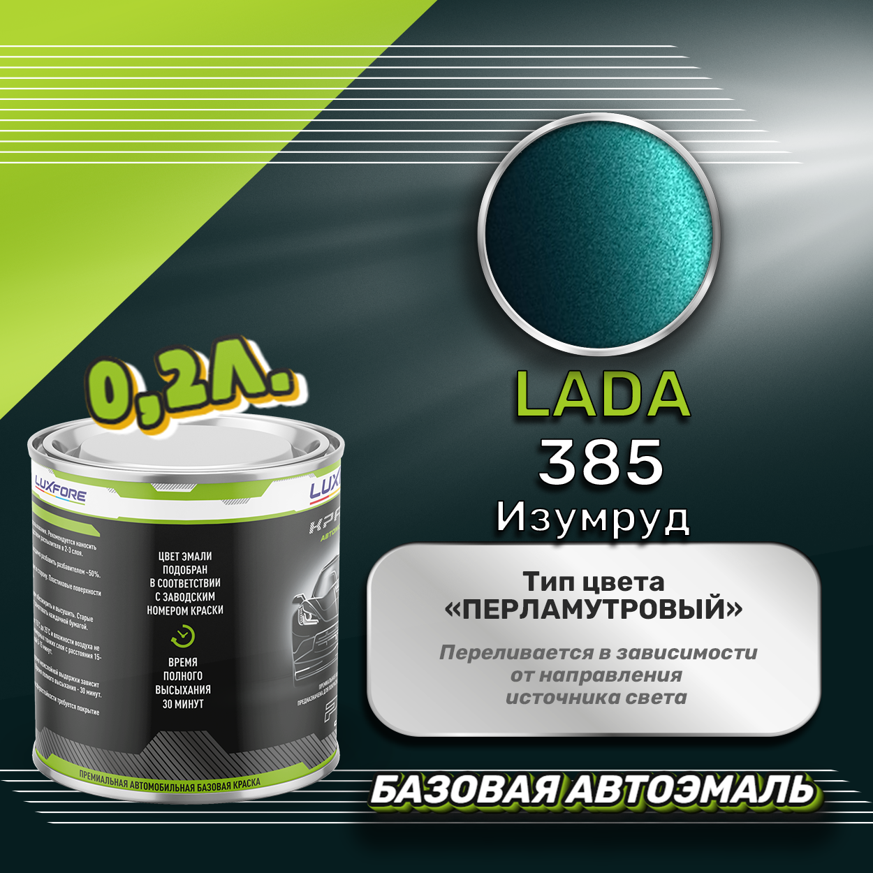 Купить Luxfore краска базовая эмаль LADA 385 Изумруд 200 мл