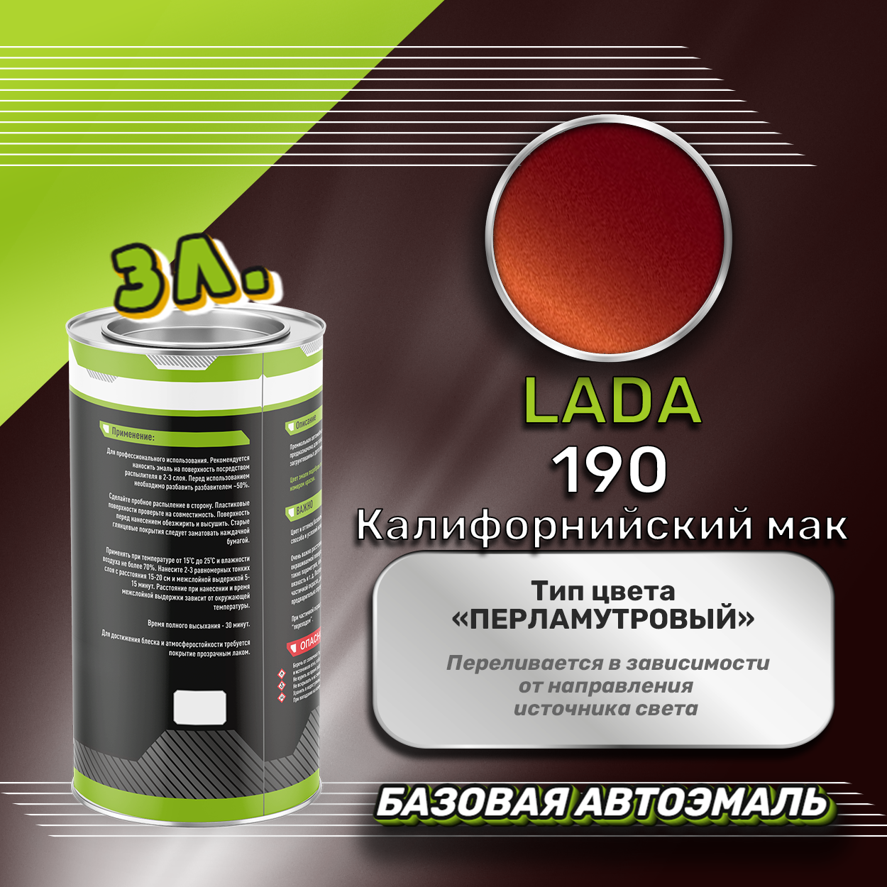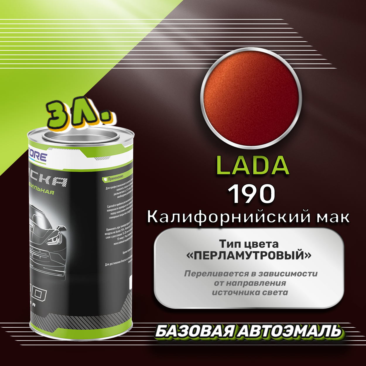Купить Luxfore краска базовая эмаль LADA 190 Калифорнийский мак 3000 мл
