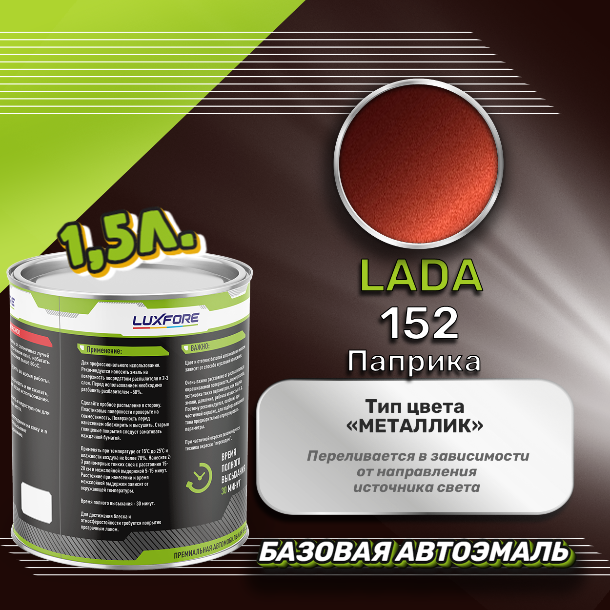 СохранитьLuxfore краска базовая эмаль LADA 152 Паприка 1500 мл интересное: