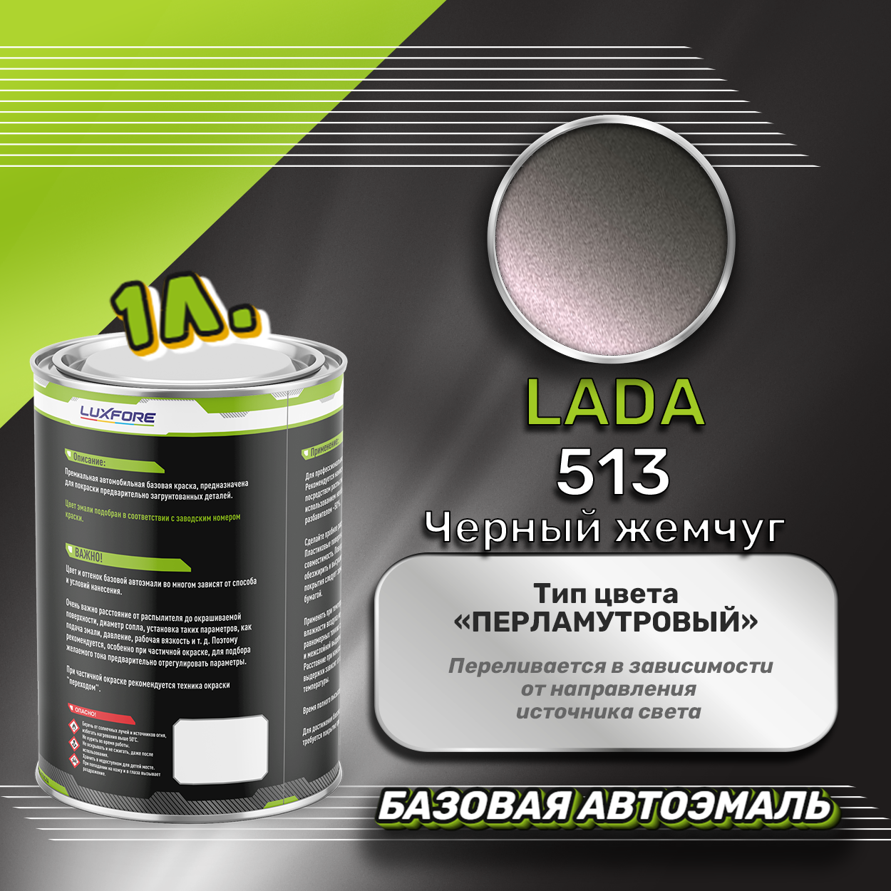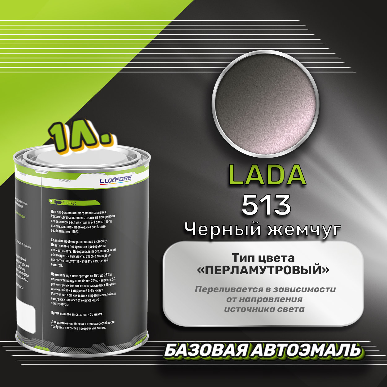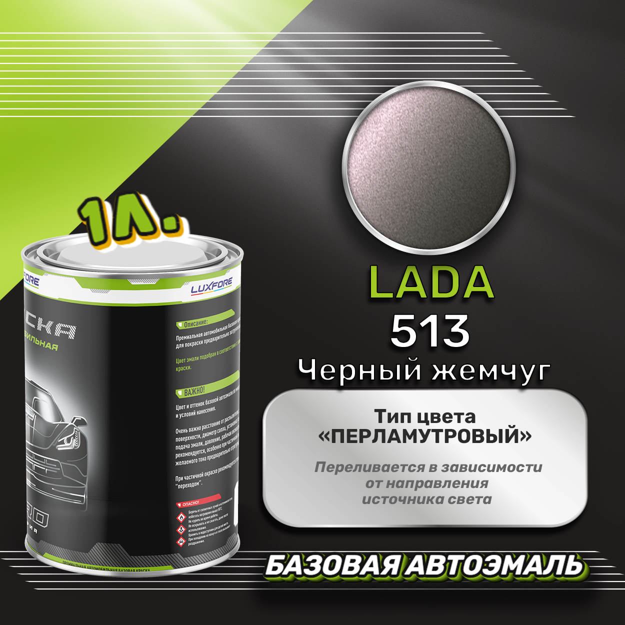 Купить Luxfore краска базовая эмаль LADA 513 Черный жемчуг 1000 мл