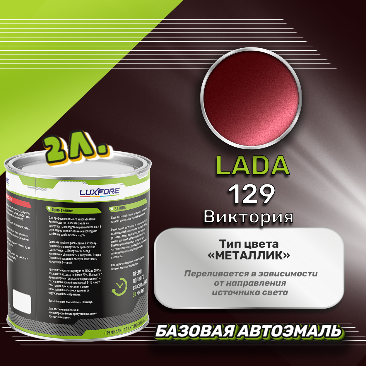 Купить Luxfore краска базовая эмаль LADA 129 Виктория 2000 мл