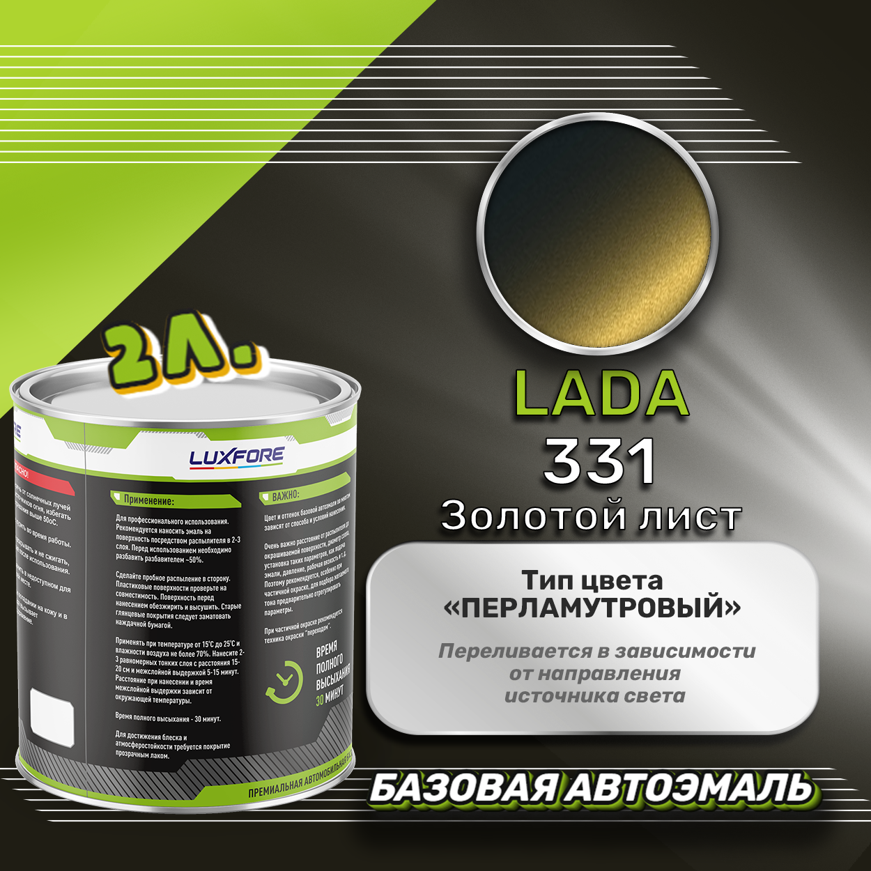 Купить Luxfore краска базовая эмаль LADA 331 Золотой лист 2000 мл