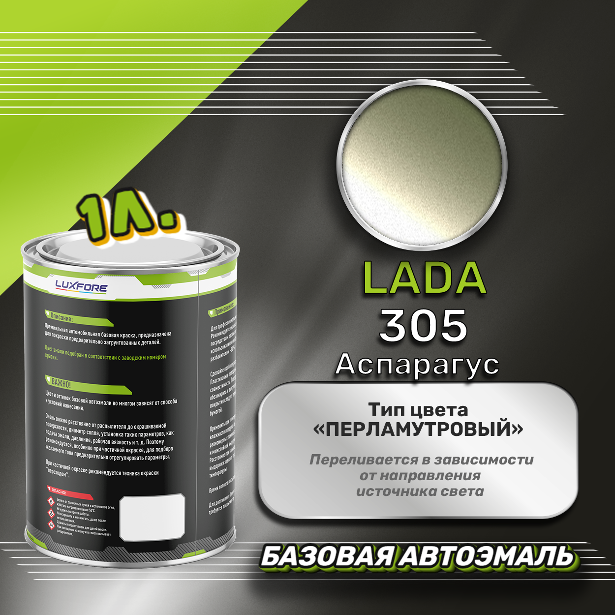Купить Luxfore краска базовая эмаль LADA 305 Аспарагус 1000 мл