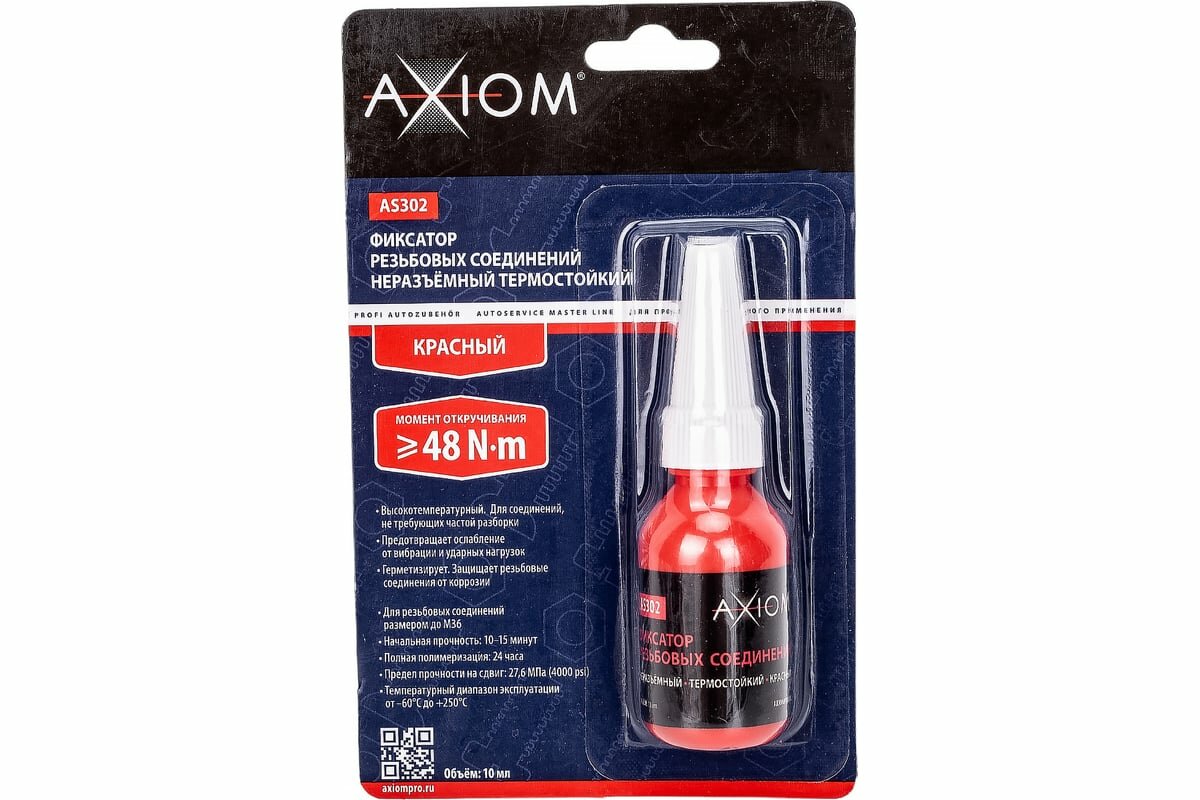Купить AXIOM Фиксатор резьбовых соединений термостойкий неразъёмный (красный) AS302