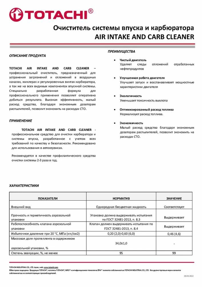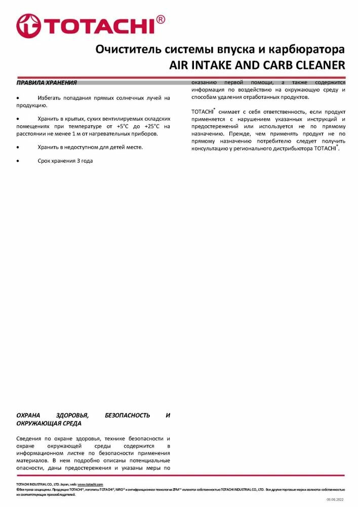 Air Intake and Carb Cleaner Очиститель карбюратора 650мл. Totachi 9B1Z6 интересное: