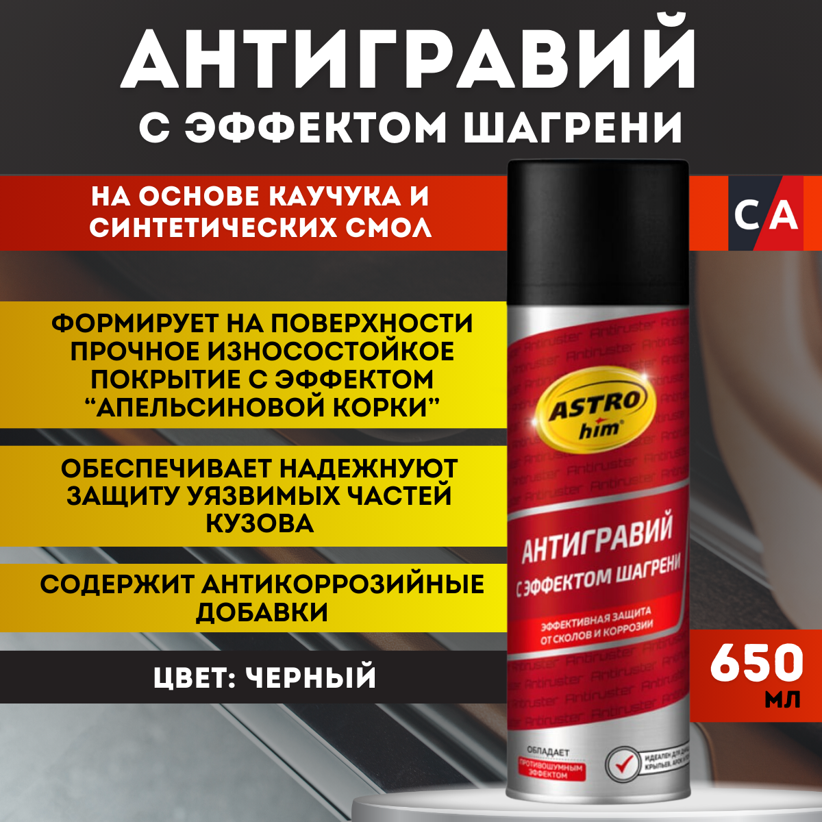 СохранитьАнтигравий ASTROhim с эффектом шагрени, черный 650 мл. интересное: