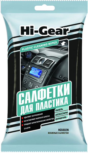 Салфетки влажные HI-GEAR для пластика 20 шт.