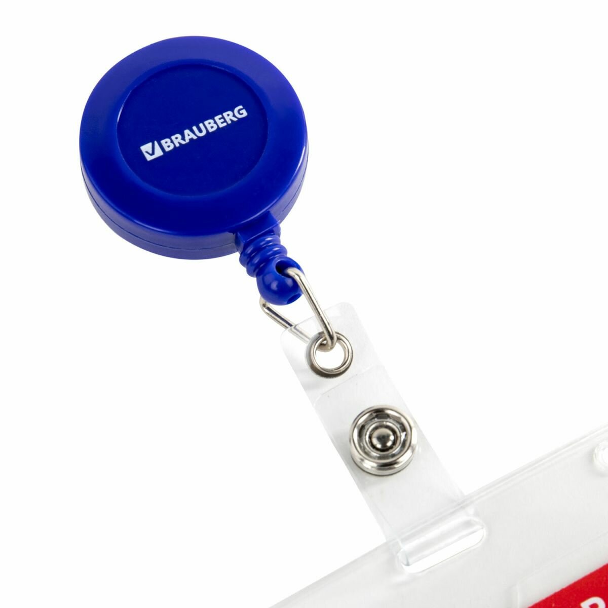 Купить Бейдж горизонтальный (60х90 мм), с держателем-рулеткой 70 см, синий, BRAUBERG, 238242