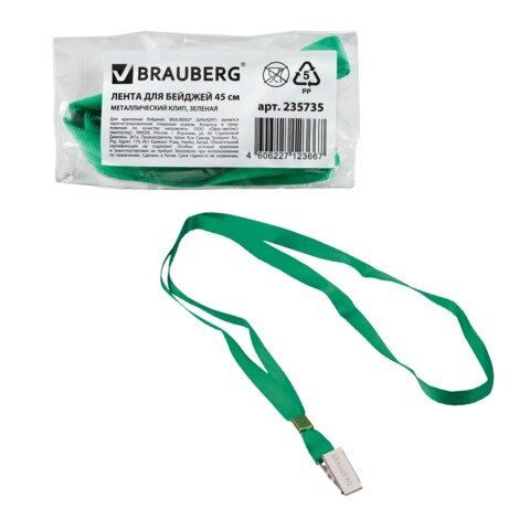 СохранитьЛента для бейджей, 45 см, металлический клип, зеленая, BRAUBERG, 235735, 20шт в компл. интересное: