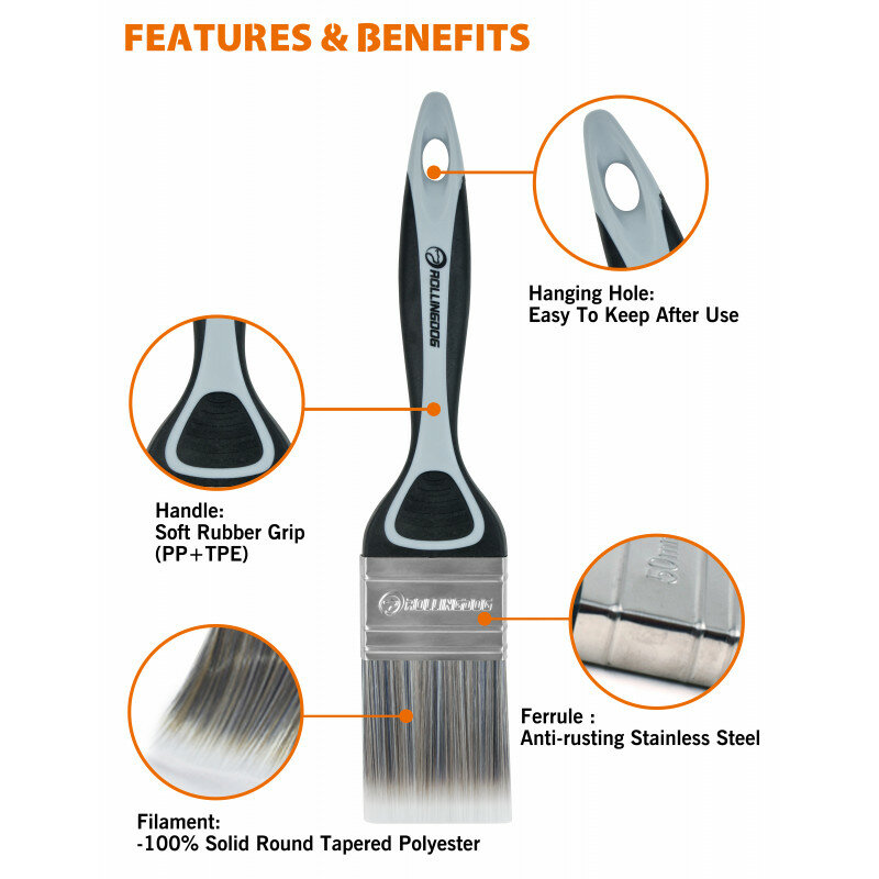 Кисть малярная плоская ROLLINGDOG BT1000 50 мм., прямой срез, щетина 100% синтетическая нить, средняя жесткость