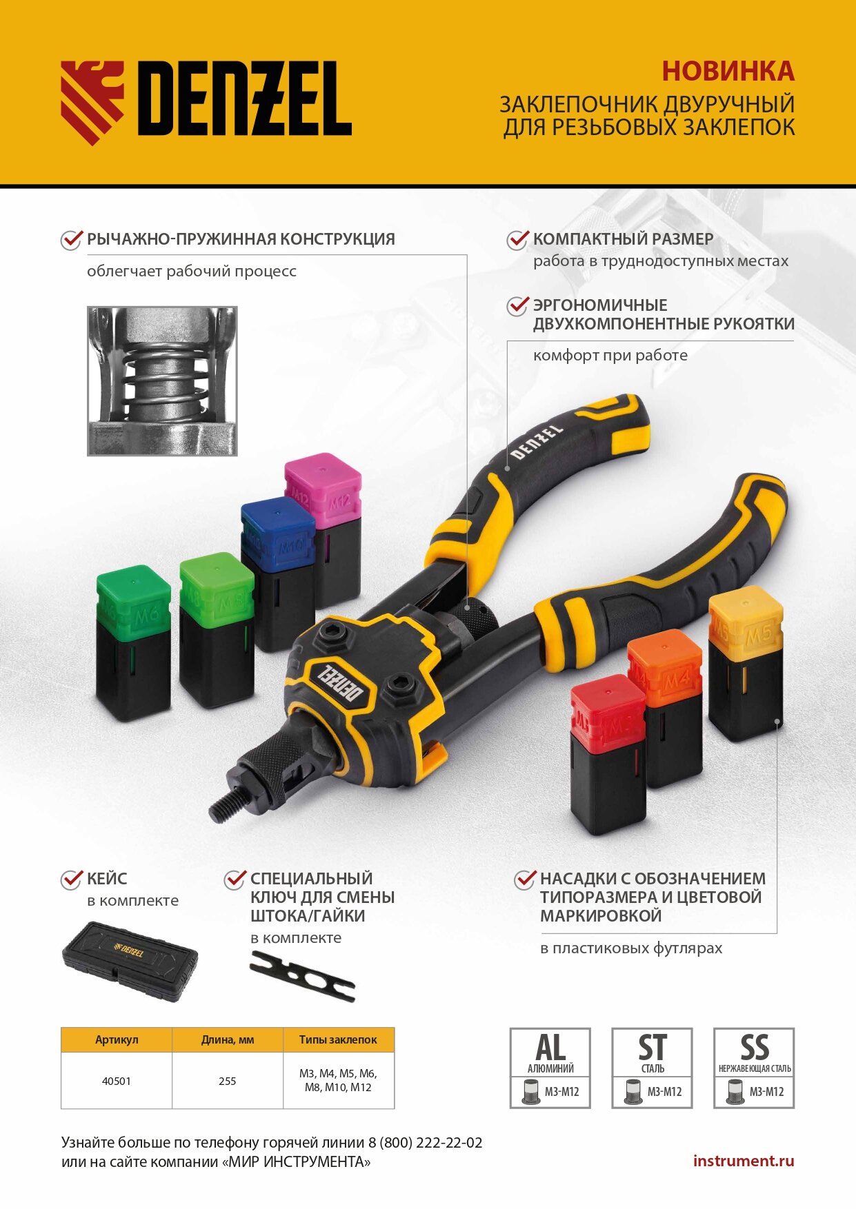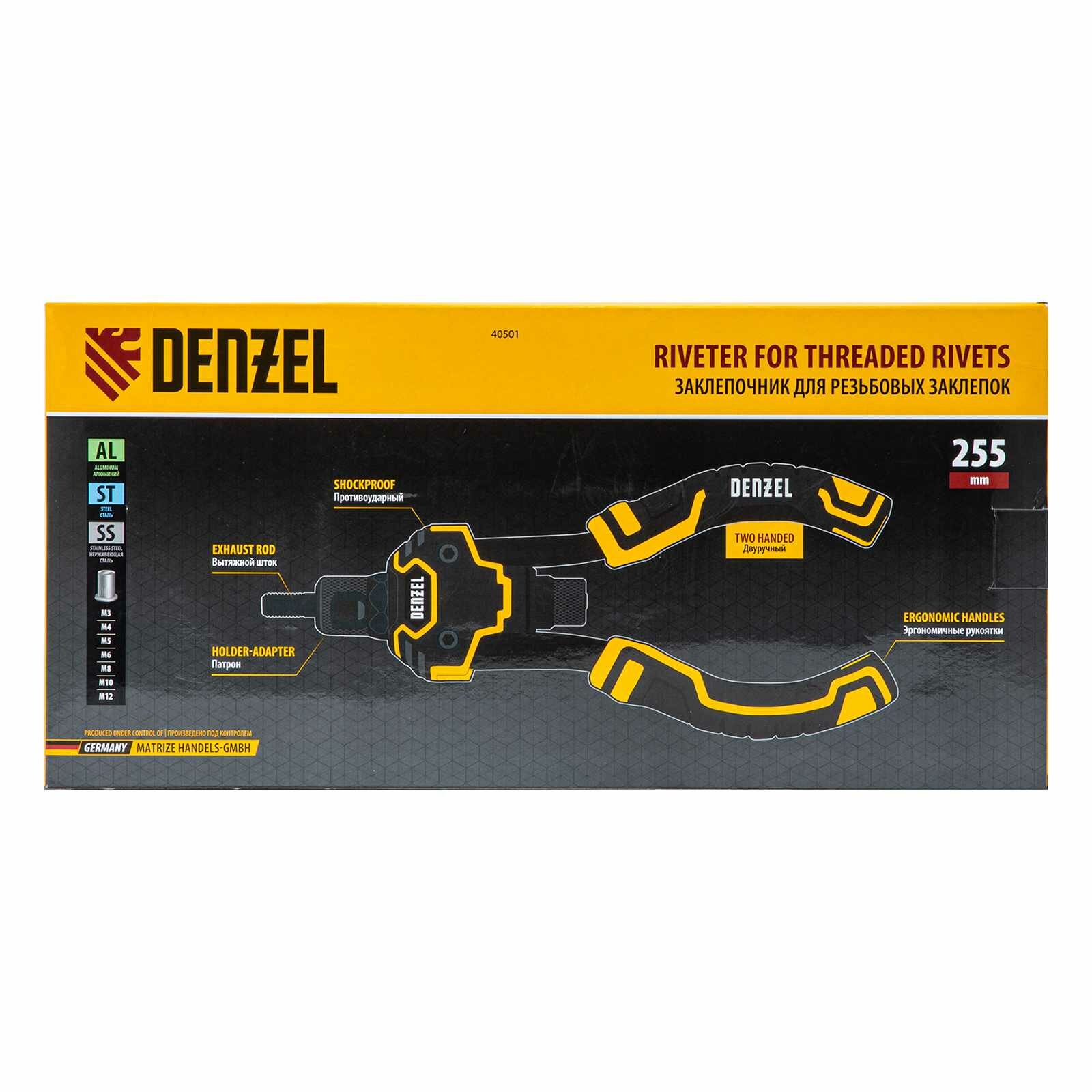Заклепочник для резьбовых заклепок, двуручный, заклепки М3, М4, М5, М6, М8, М10, M12 Denzel интересное: