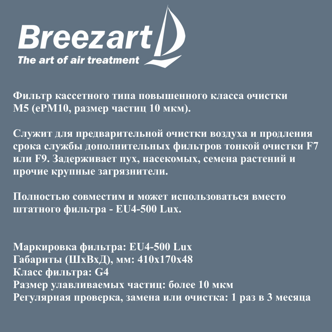 Улучшенный фильтр грубой очистки Breezart M5-500 Lux (410-170-48-M5) интересное: