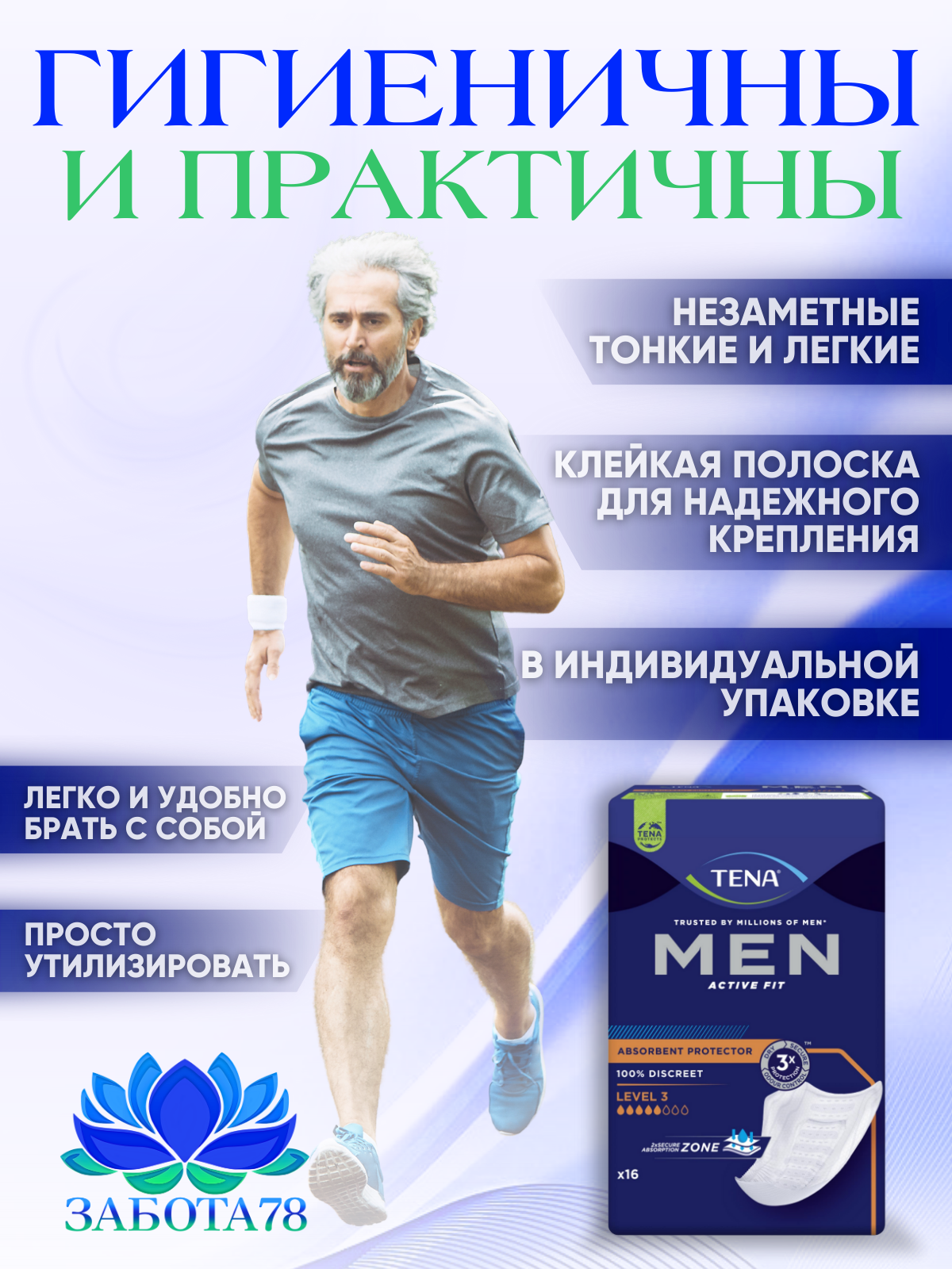 TENA Men Active FIT - урологические прокладки для мужчин 3 уровень , 5 капель, 1 упаковка 16 шт, интересное: