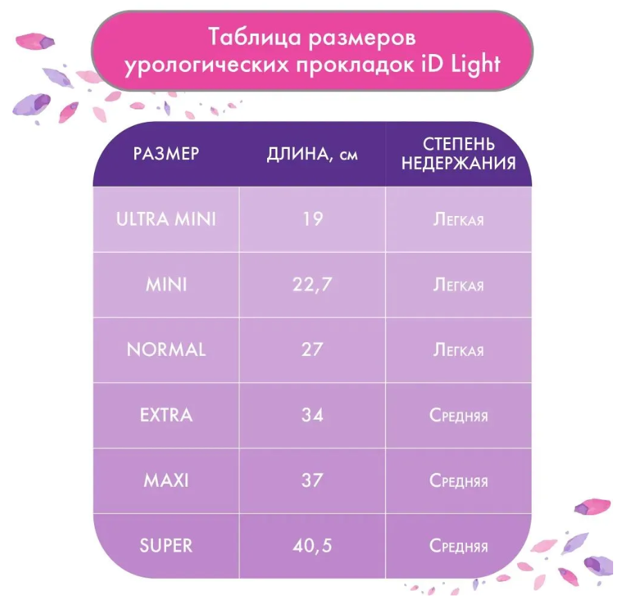 | Комплектация | iD Урологические прокладки LIGHT ULTRA MINI - 2 упаковки по 28 штук |