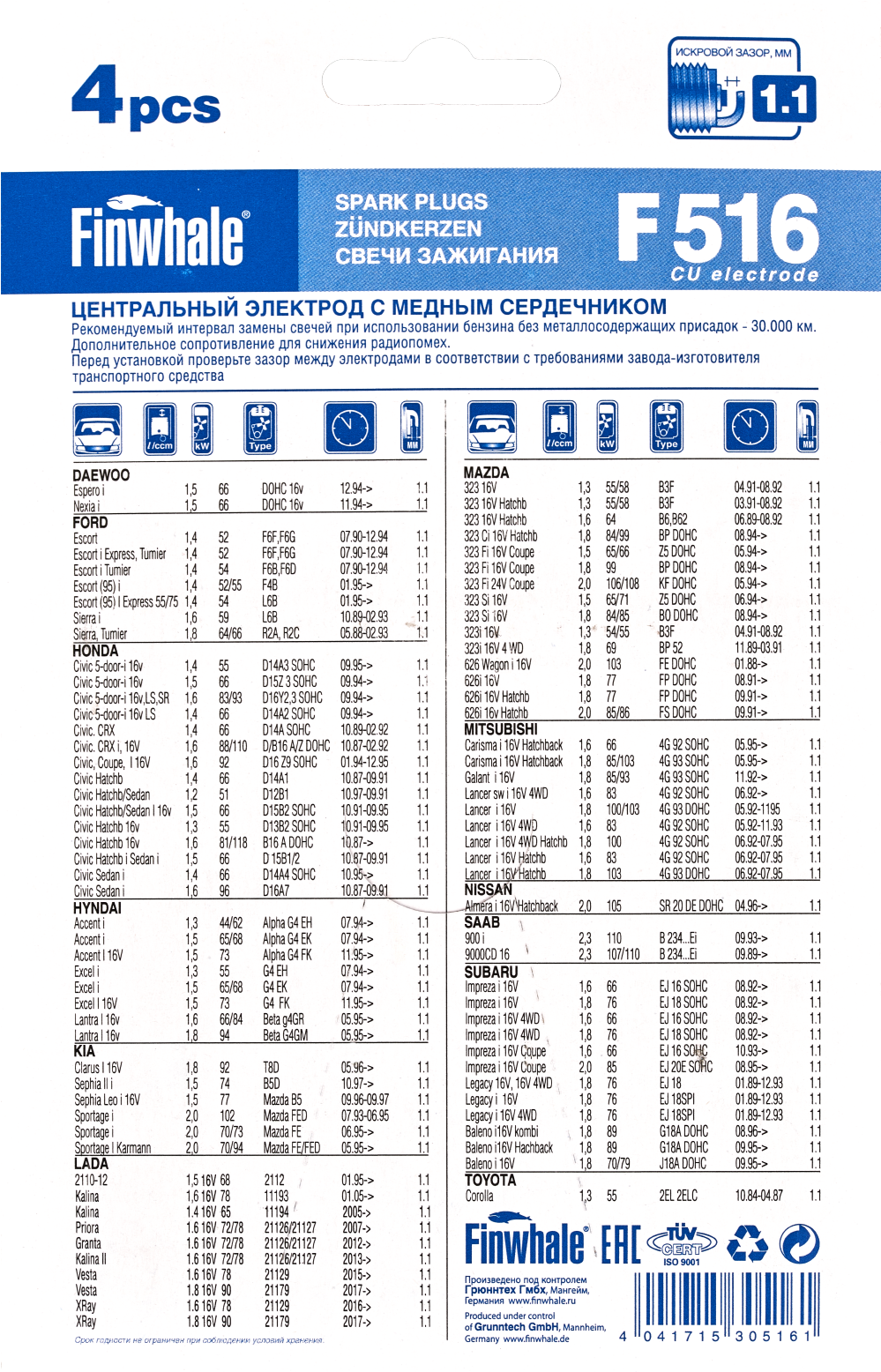 Свечи зажигания LADA (ВАЗ) 16 клапанов инжектор, Finwhale F516, 4шт. интересное: