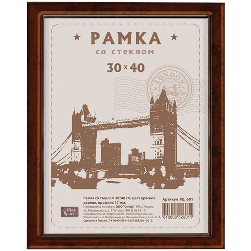 Купить Рамка деревянная (МДФ) 30*40см, OfficeSpace, №1, акриловое небьющееся стекло, красное дерево