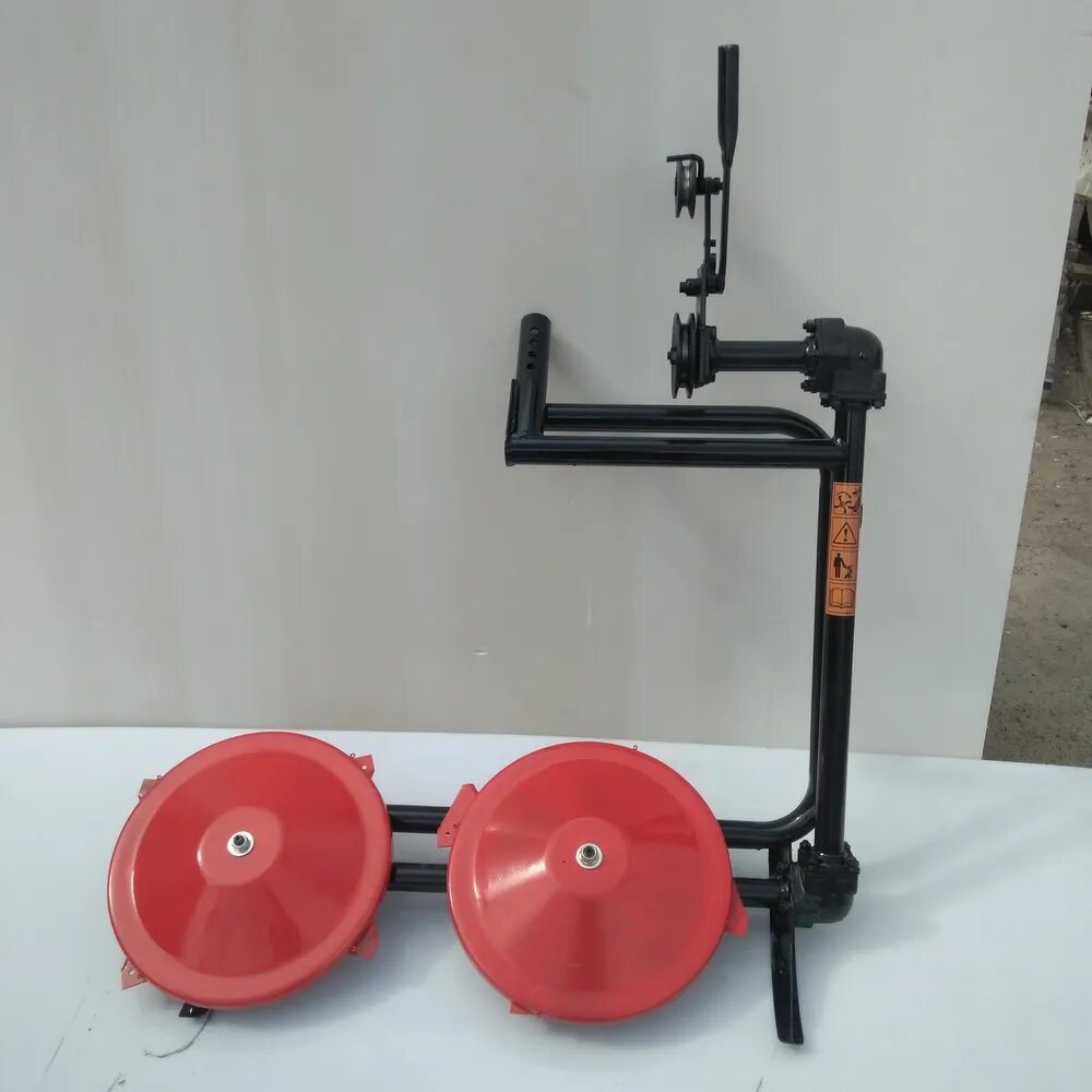 | Дополнительная информация | тип косилки: роторная; ременной привод; количество дисков: 2 шт.; скорость вращения: 1900 об/мин; производительность: 0.15 га/час |