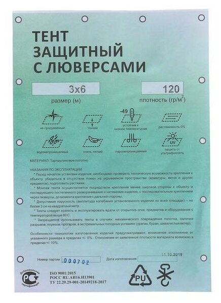 Ниже Вы можете прочитать отзывы на Тент защитный Sima-land 6х3 м, 120 г/м2, шаг 1 м, тарпаулин, УФ, зеленый/серебристый (НФ-00000067), ознакомится с подробными характеристиками, посмотреть интересные обзоры и фотографии на Тент защитный Sima-land 6х3 м, 120 г/м2, шаг 1 м, тарпаулин, УФ, зеленый/серебристый (НФ-00000067).