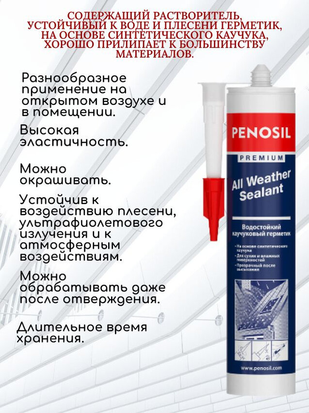Герметик каучуковый всепогодный прозрачный PENOSIL 280 ml интересное: