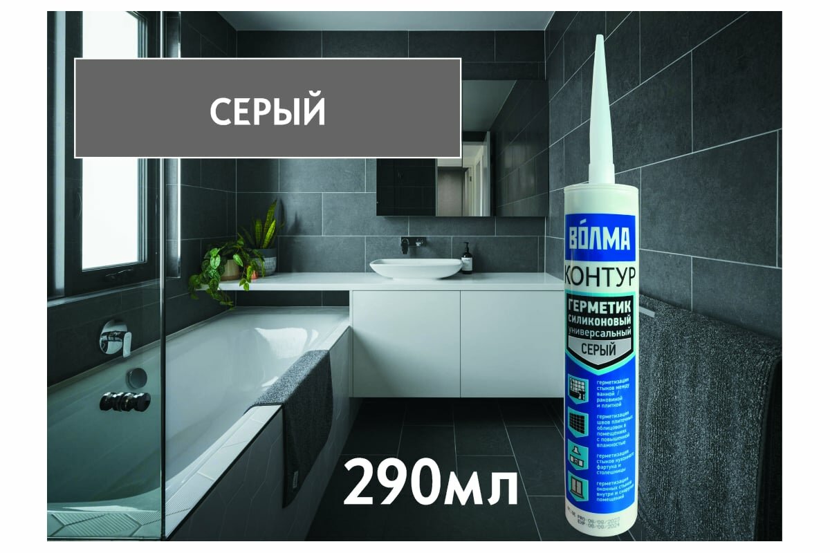 Герметик силиконовый волма-контур, серый, герметик для ванной, 290мл