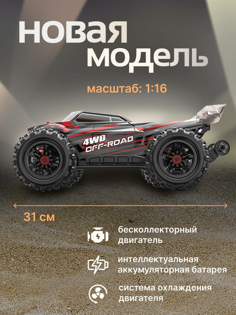 Радиоуправляемый внедорожник MJX Hyper Go 4WD Brushless Truggy 1:16 - MJX-16210-RED (MJX-16210-RED) интересное: