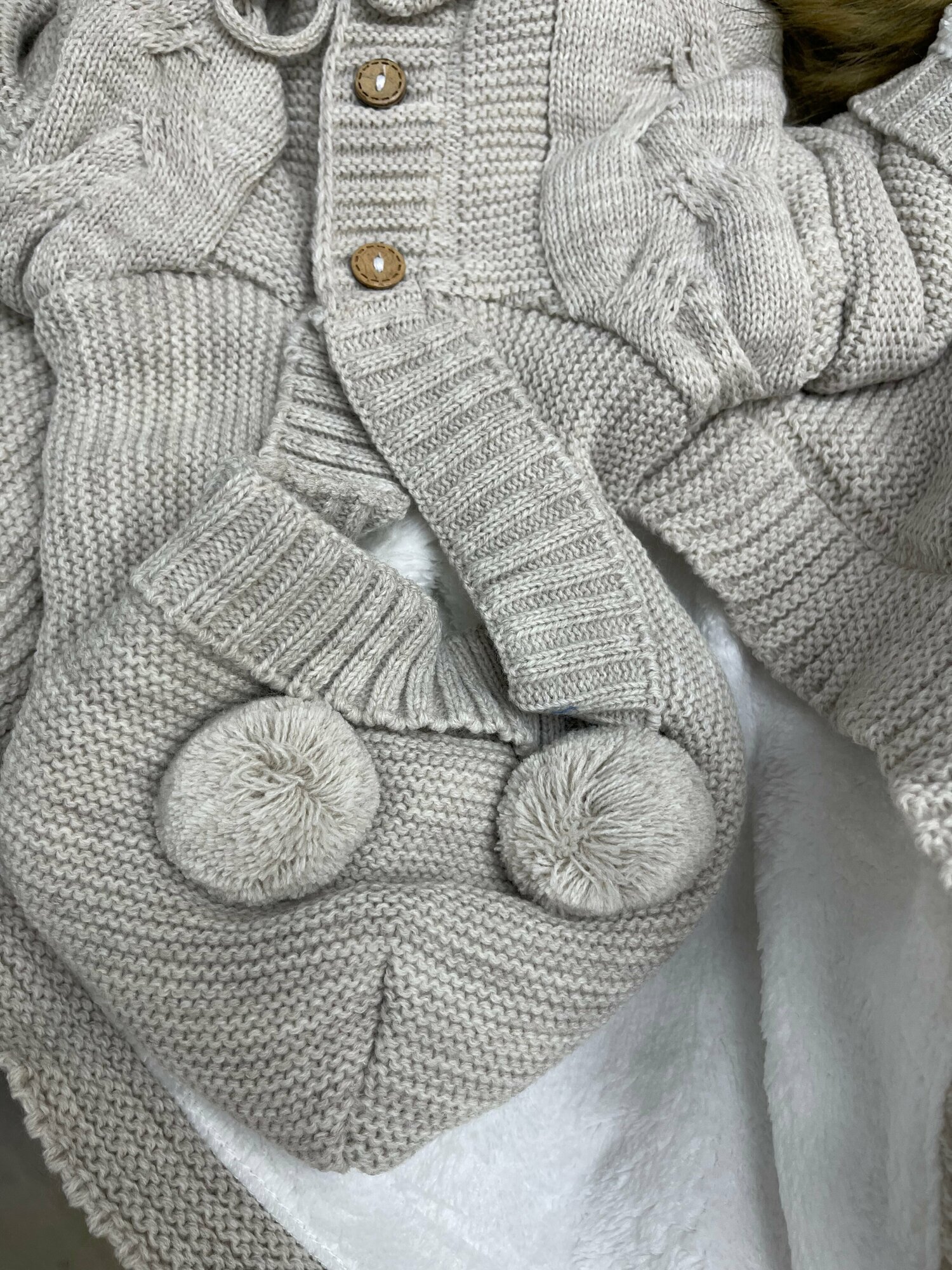 Конверт для новорожденного на выписку теплый вязаный 8 предметов в роддом безе