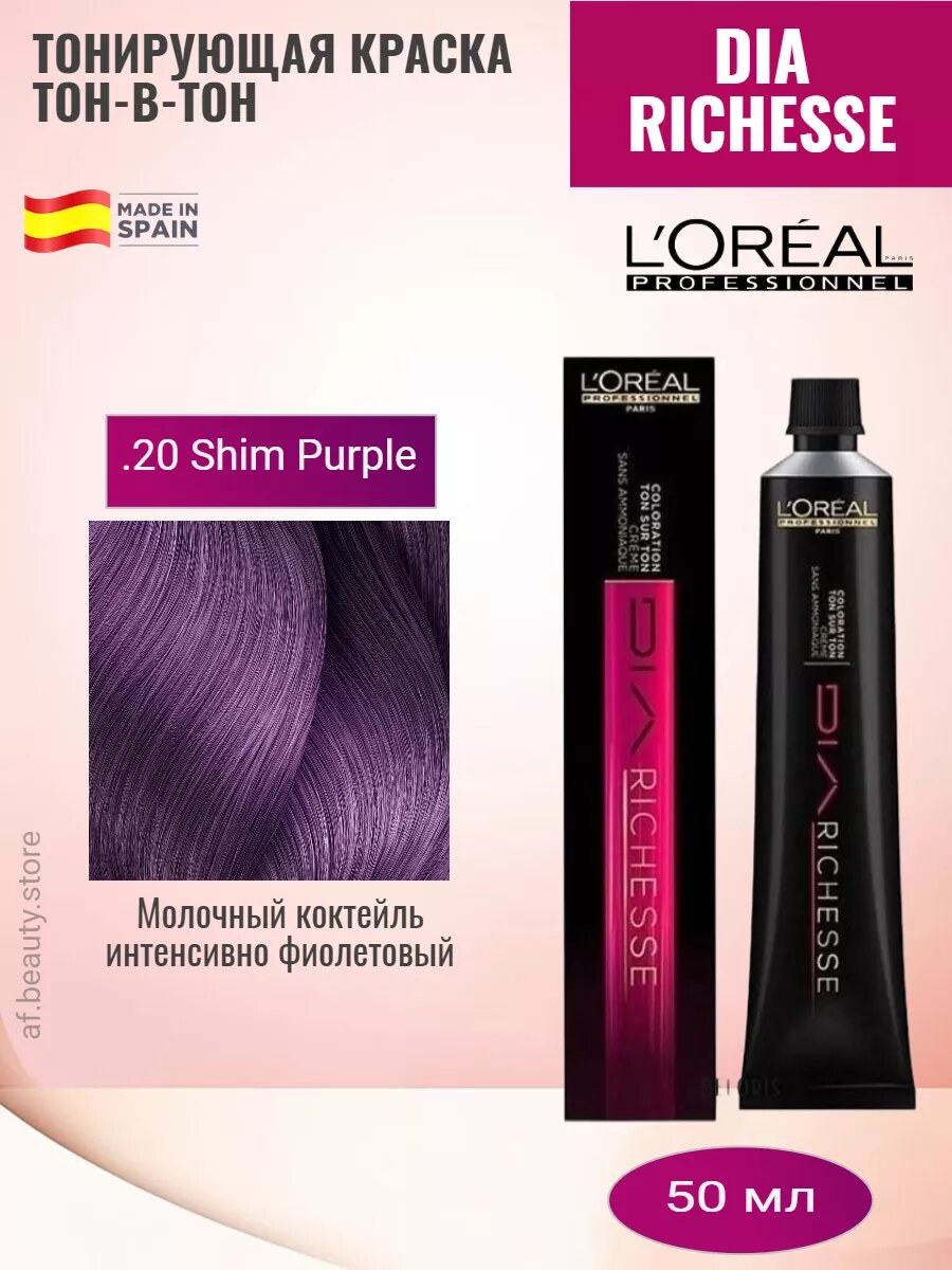 Ниже Вы можете прочитать отзывы на L'Oreal Professionnel Dia Richesse .20 интенсивный фиолетовый молочный коктейль 50мл, ознакомится с подробными характеристиками, посмотреть интересные обзоры и фотографии на L'Oreal Professionnel Dia Richesse .20 интенсивный фиолетовый молочный коктейль 50мл.