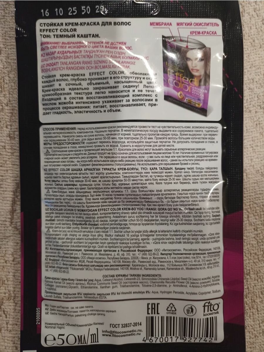 | Дополнительная информация | 2-камерная упаковка содержит краску и проявляющую эмульсию в одном пакете |