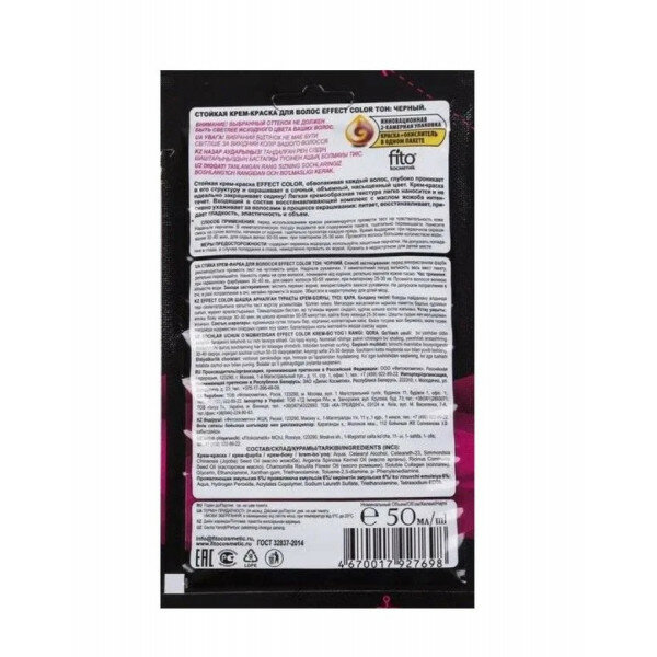 Fito косметик Effect Сolor стойкая крем-краска для волос, 1.0 черный, 50 мл