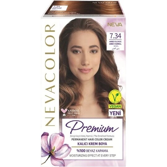 Купить Крем-краска для волос Neva "Premium", стойкая, тон 7.34, Amber Blonde