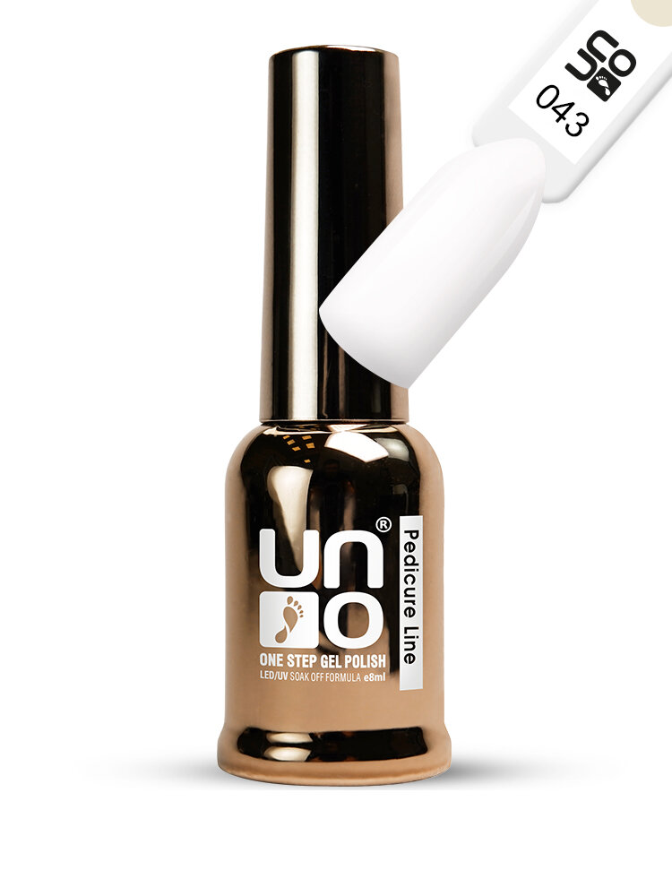 UNO, Однофазный гель лак ONE STEP PEDICURE LINE №43 белый, 8 мл
