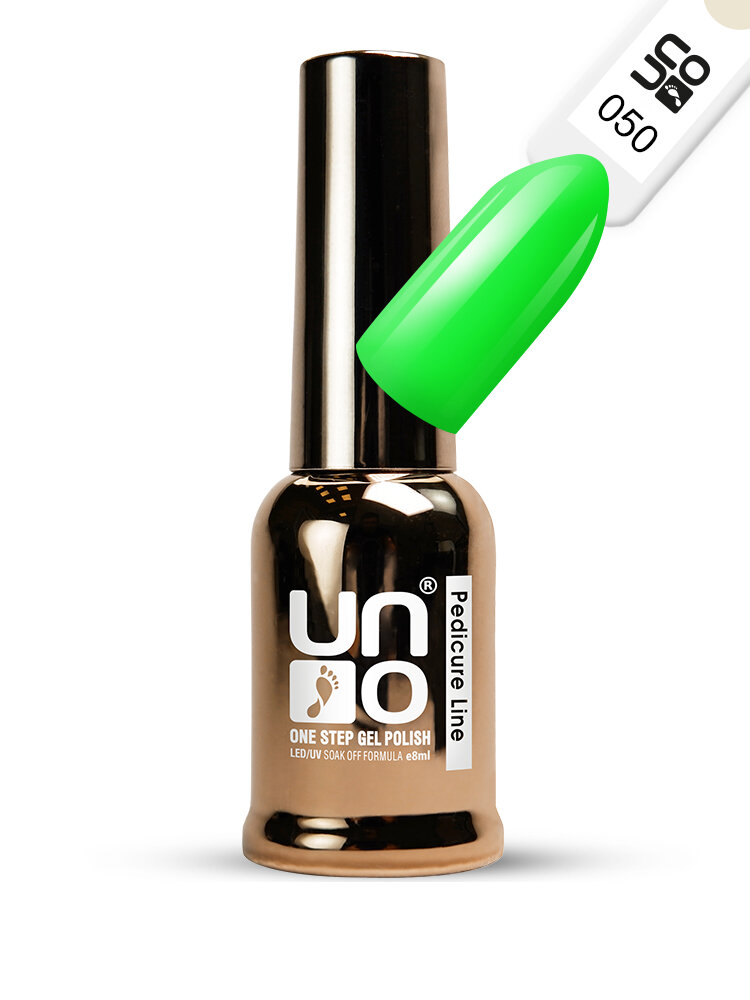 UNO, Однофазный гель лак ONE STEP PEDICURE LINE №50 салатовый неон, 8 мл