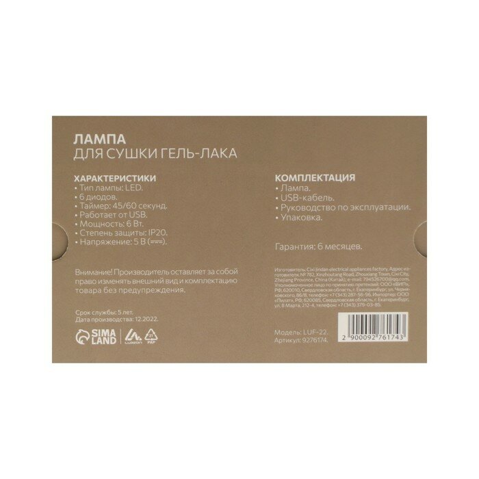 Лампа для гель лака LED, 6 Вт, 6 диодов, таймер 45/60 с интересное: