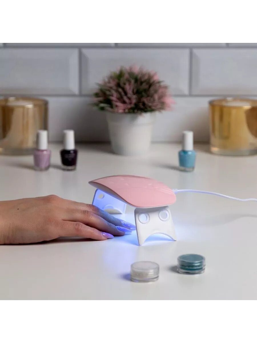 Лампа для гель лака Luazon LUF-22, LED, 6 Вт, 6 диодов, таймер 45/60 с, USB, розовая 9276174