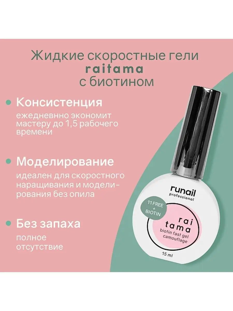 Гипоаллергенный камуфлирующий гель Runail Raitama с биотином №8259, 15 г